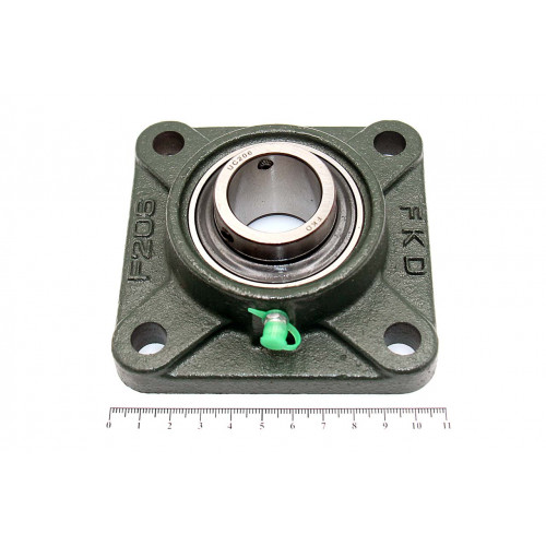 Подшипник имеет отверстия и канавку для смазки, корпус комплектуется пресс-маслёнкой. Направление воспринимаемых нагрузок - радиальное и осевое в обе стороны. Монтаж на валу удобен и прост. Установлен в корпус F фланцевого типа.