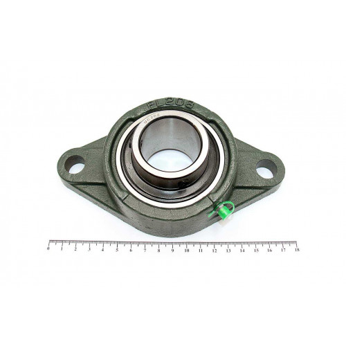 Подшипник имеет отверстия и канавку для смазки, корпус комплектуется пресс-маслёнкой. Направление воспринимаемых нагрузок - радиальное и осевое в обе стороны. Монтаж на валу удобен и прост. Установлен в корпус PL фланцевого типа.