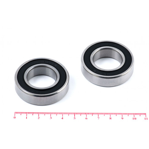 2RS – уплотнения с двух сторон из бутадиенакрилнитрильного каучука армированного листовой сталью (в зависимости от партии могут быть синего, чёрного, оранжевого либо красно-коричневого цвета и отличаться от представленного на фотографии)