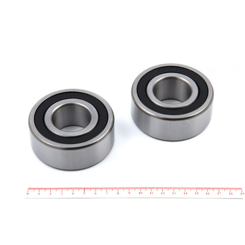 2RS – уплотнения с двух сторон из бутадиенакрилнитрильного каучука армированного листовой сталью (в зависимости от партии могут быть синего, чёрного, оранжевого либо красно-коричневого цвета и отличаться от представленного на фотографии)