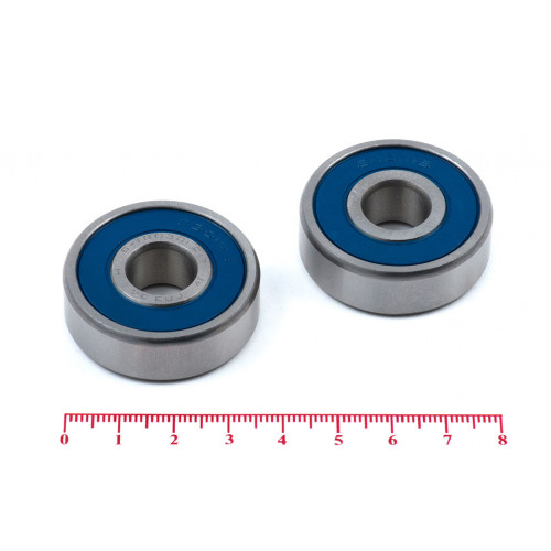 2RS – уплотнения с двух сторон из бутадиенакрилнитрильного каучука армированного листовой сталью (в зависимости от партии могут быть синего, чёрного, оранжевого либо красно-коричневого цвета и отличаться от представленного на фотографии)