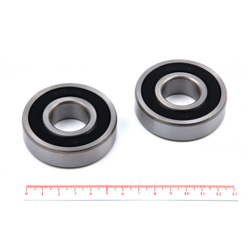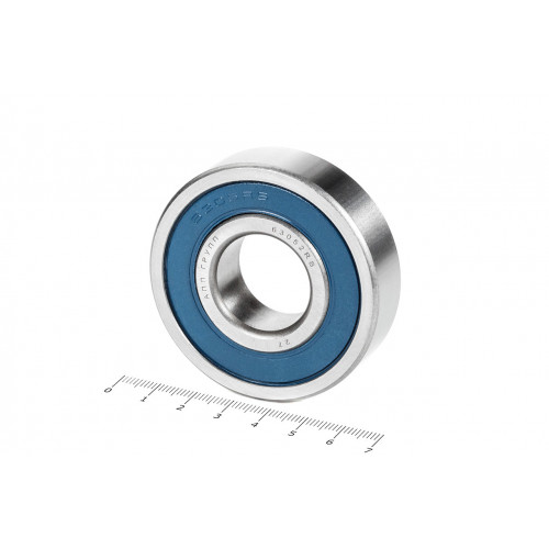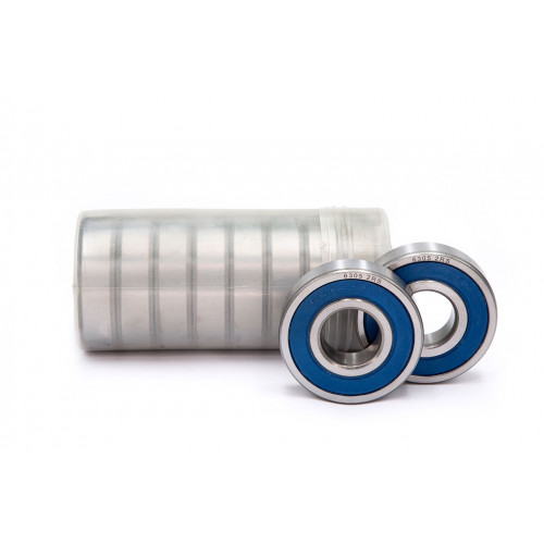 2RS – уплотнения с двух сторон из бутадиенакрилнитрильного каучука армированного листовой сталью (в зависимости от партии могут быть синего, чёрного, оранжевого либо красно-коричневого цвета и отличаться от представленного на фотографии)