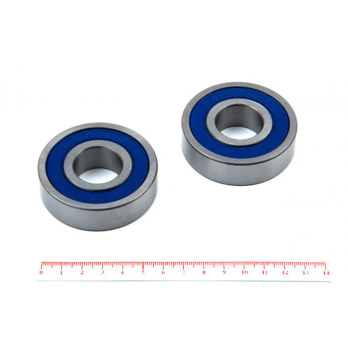 2RS – уплотнения с двух сторон из бутадиенакрилнитрильного каучука армированного листовой сталью (в зависимости от партии могут быть синего, чёрного, оранжевого либо красно-коричневого цвета и отличаться от представленного на фотографии)